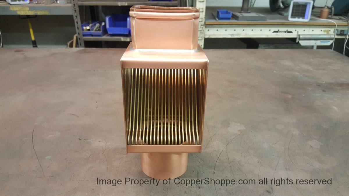 - AutoClear Brasstonian Standard Copper Downspout Cleanouts Leaf Debris Diverters Filters for Rectangular Copper Downspouts