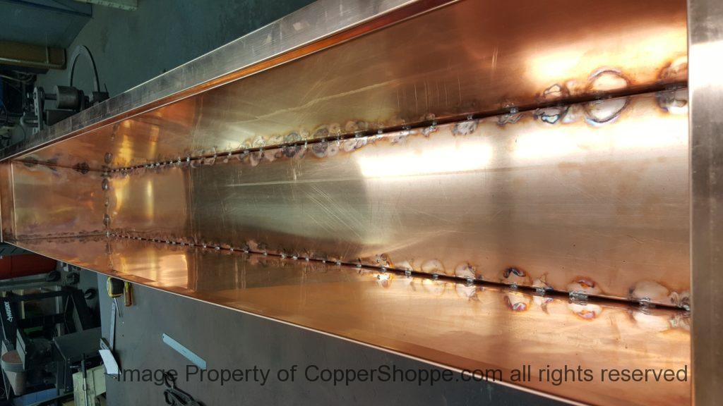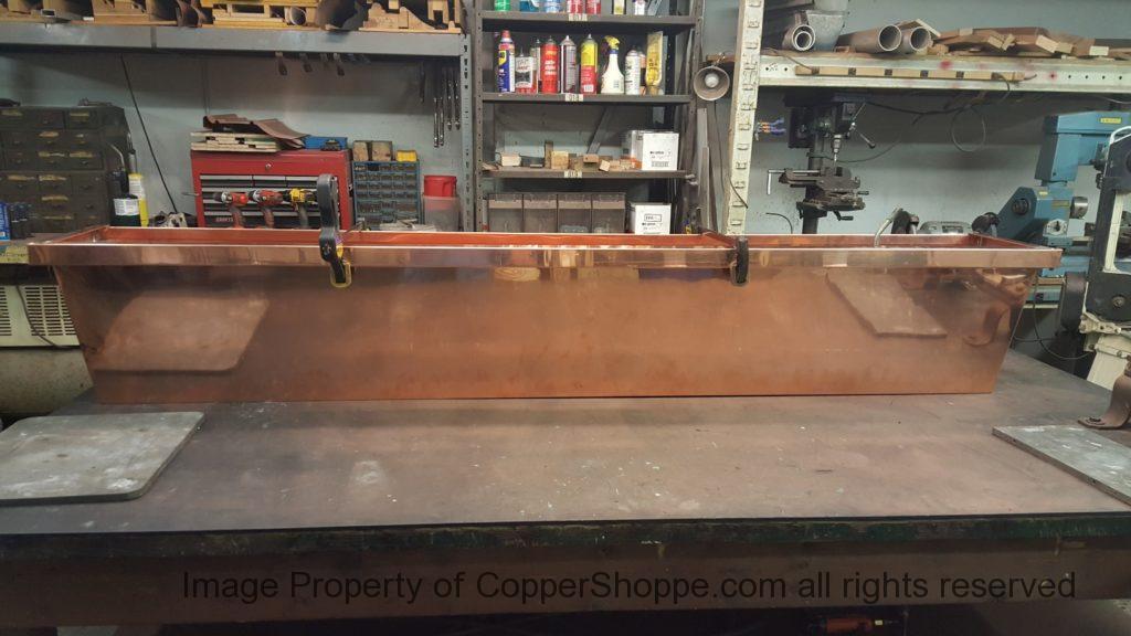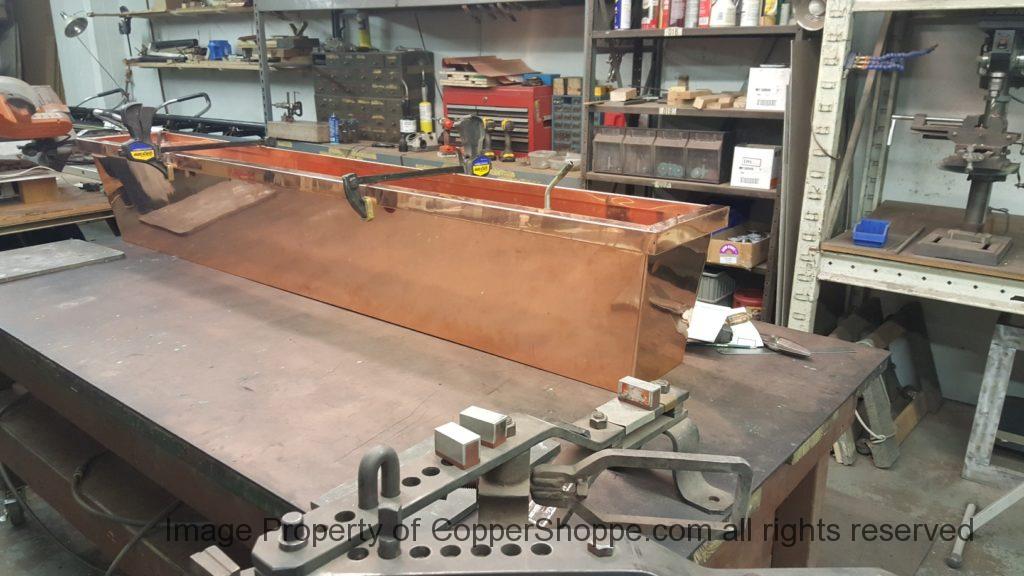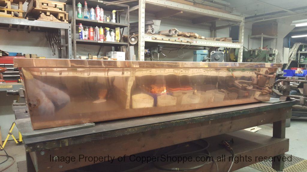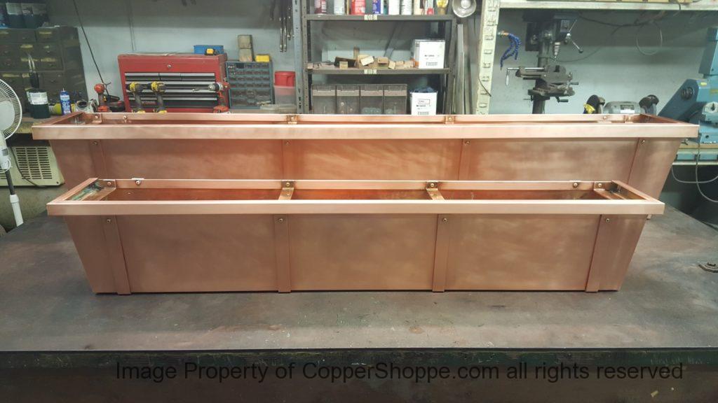 I am interested in having you build a copper planter insert to go in the space at the top of my bookcase with the interior dimensions of approximately 8.35” in width, 58.25” in length and 5.25” in depth, surrounded by a .75” wooden border that I would like to have covered with the copper and extending down the outside of the bookcase for a few inches.