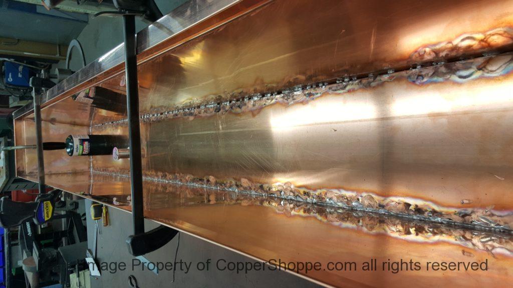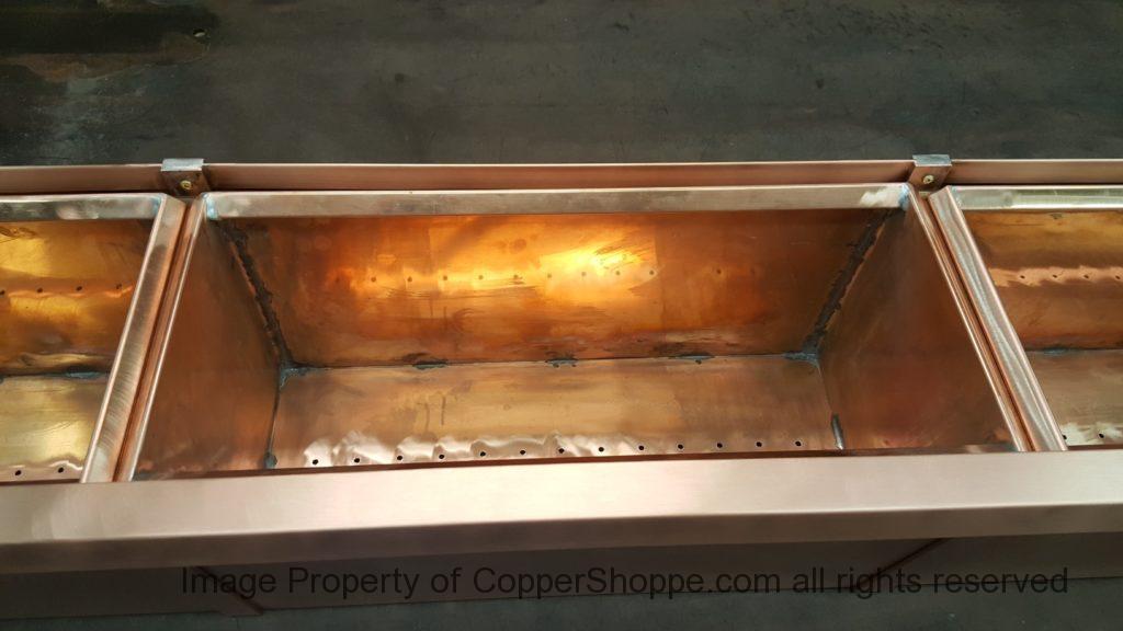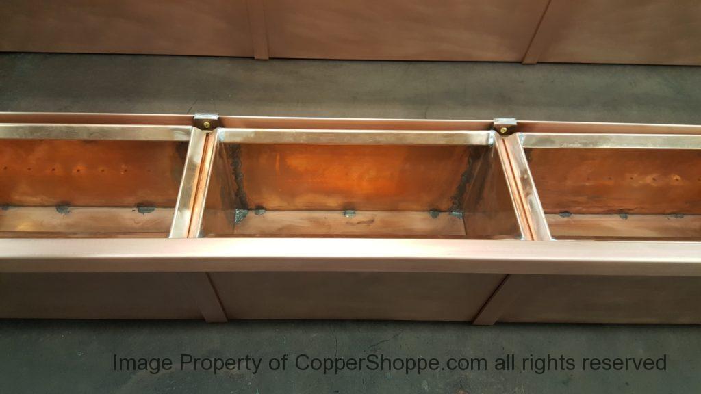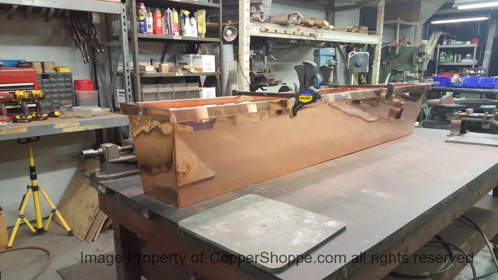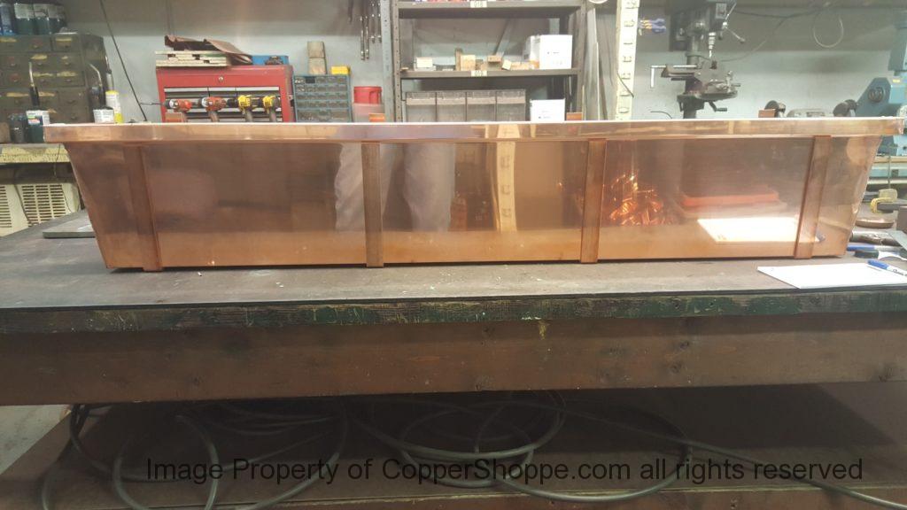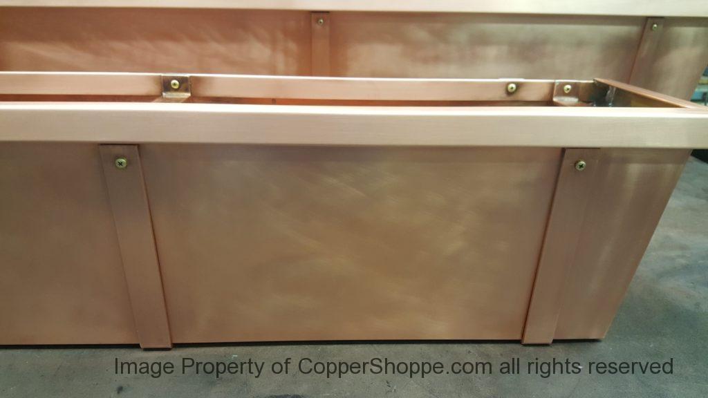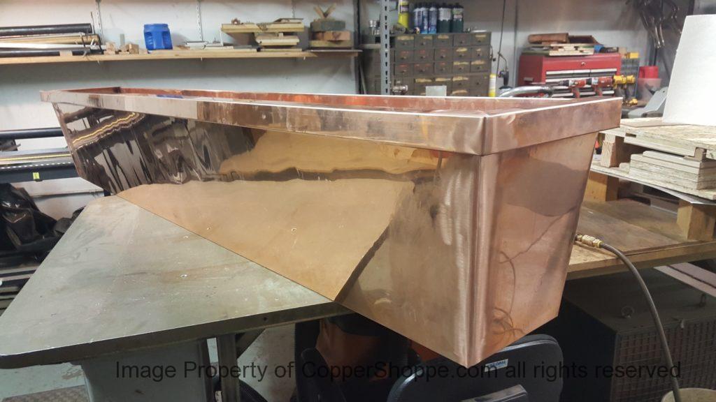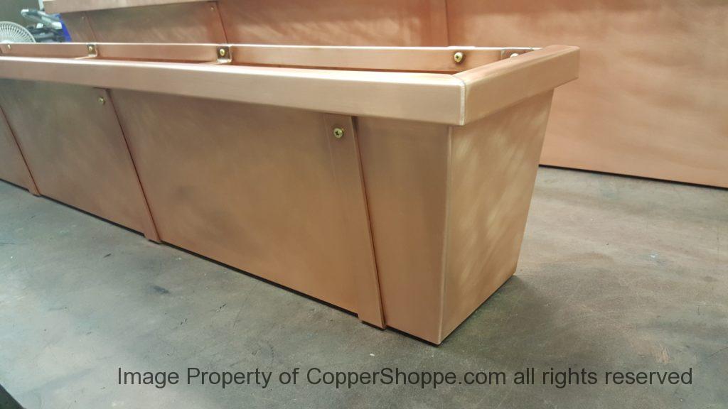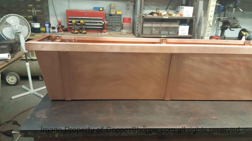 I am interested in having you build a copper planter insert to go in the space at the top of my bookcase with the interior dimensions of approximately 8.35” in width, 58.25” in length and 5.25” in depth, surrounded by a .75” wooden border that I would like to have covered with the copper and extending down the outside of the bookcase for a few inches.