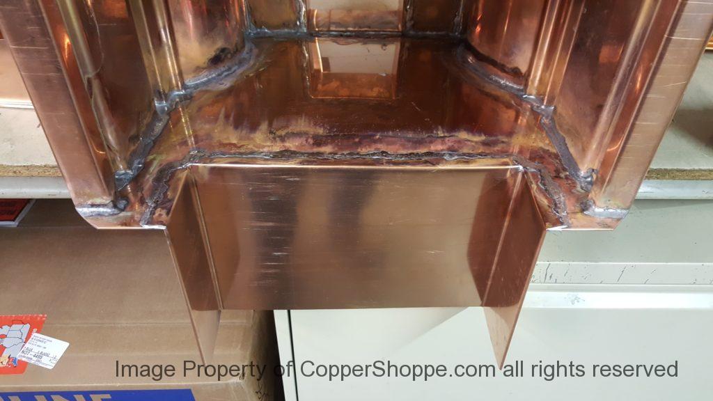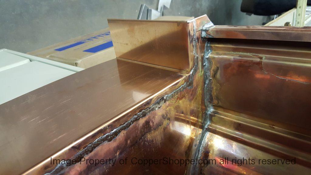 The Scupper Trough is supposed to be 3″ tall by 12″ wide by 8″ long…we added 5/16″ to it in height so that the Trough top edge aligned with the Top Flange of the Leader Box (no notched out like corner but a smooth corner). Little stronger and should be better for flashing into the trough with the roofing membrane…