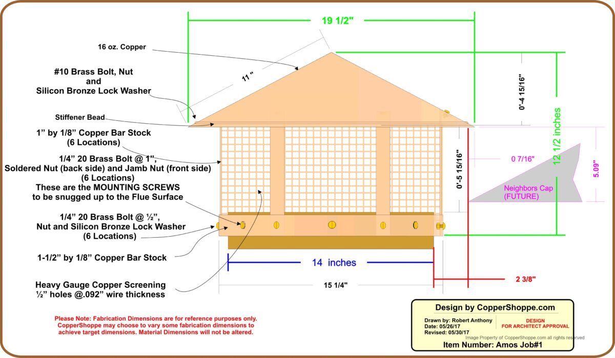 Also we will be sending a couple of small wood stops. These stops when inserted into the Chimney Cap Screening will hold the Cap Level and in proper position while the mounting screws are tightened. Trying to hold a cap at a certain level and tighten screws and keep level can be a pain…especially if you are doing it one man.