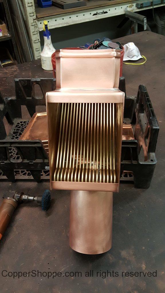 Custom AutoClear. Reduced Width, Outlet set to far right, Outlet 6″ long and also at 18 degree angle.