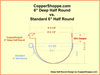 Our 5″ – 6″ and 7″ Deep Half Round Gutter is over 1-1/2″ deeper