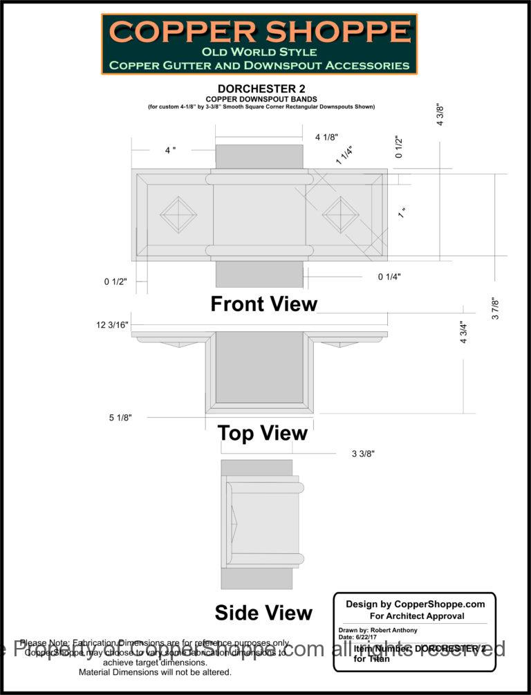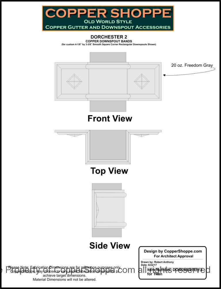 /, Ornamental Copper Downspout Bands, Projects in Process/Dorchester 2 Freedom Gray Copper Ornamental Downspout Bands Straps